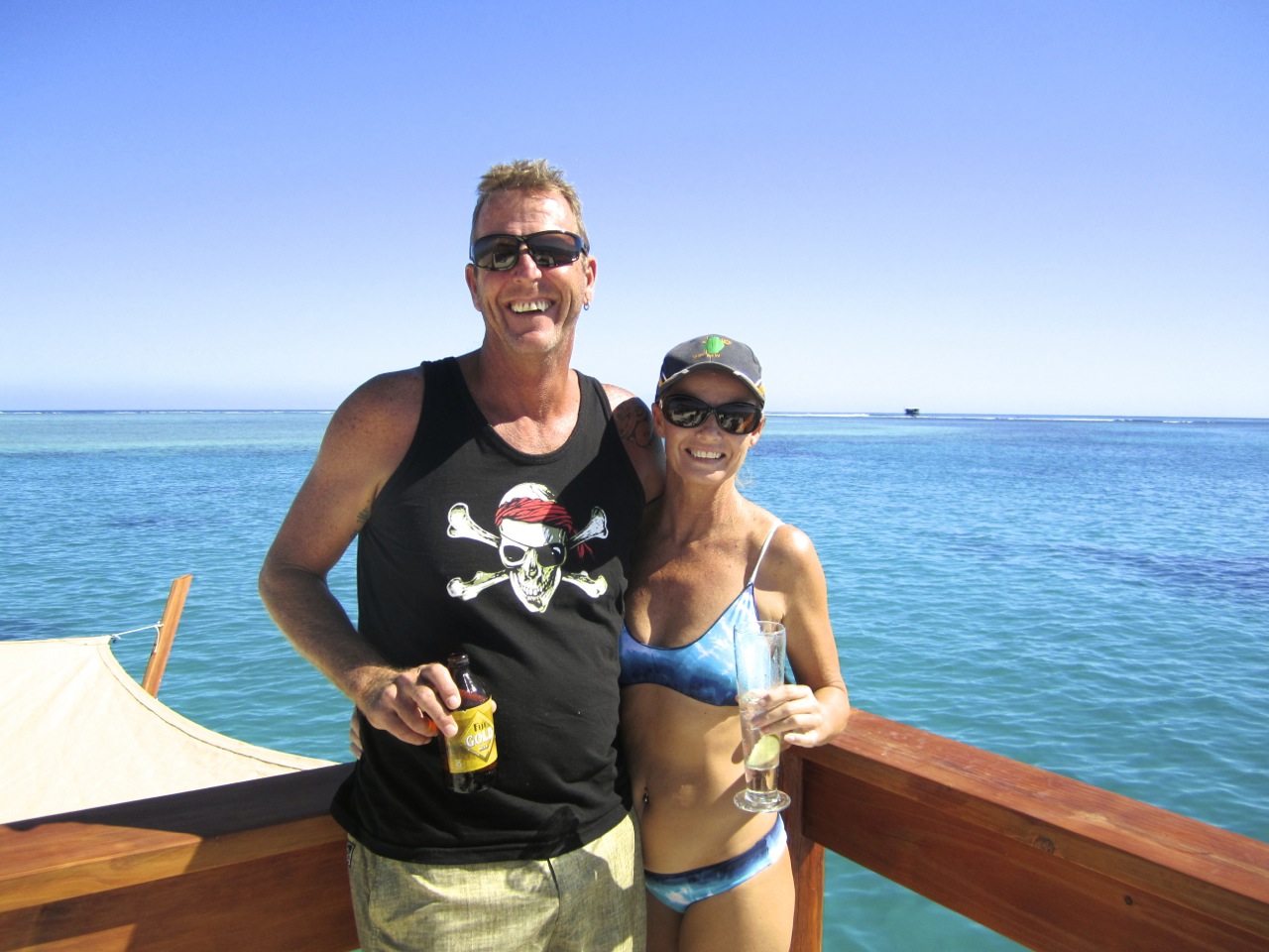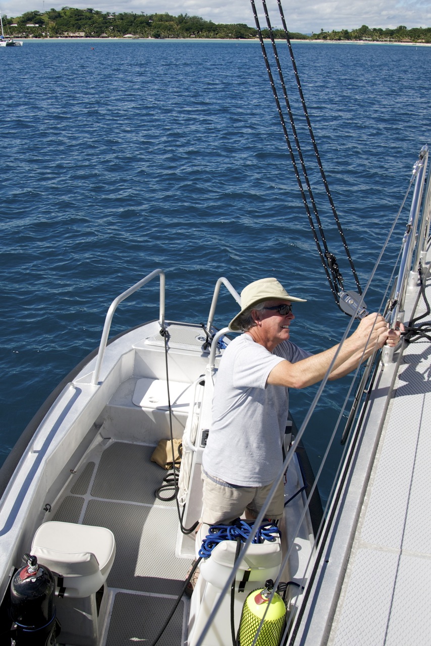 So. Where to? First, our Australian friends John and Leanne aboard s/v Red Sky, whom we’d met in Costa Rica and then reconnected with in the Galapagos, showed us some great nearby snorkeling reefs. About 30 minutes from Musket Cove, it presented the perfect opportunity for Stan to start the process of breaking in the 40 hp 2-stroke outboard.