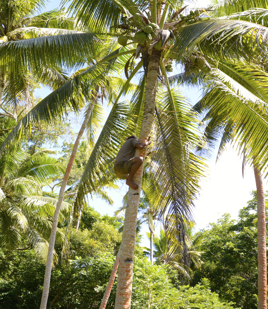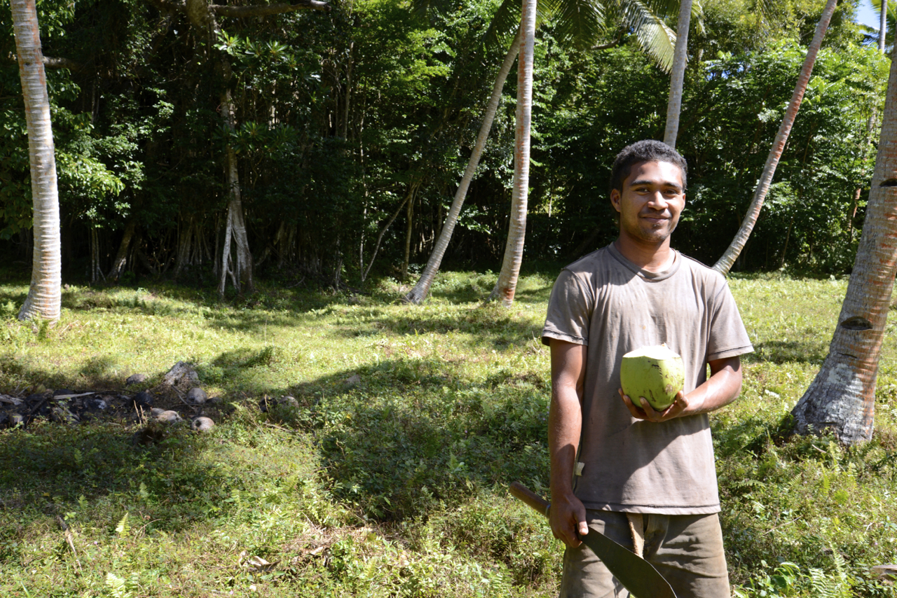 The island produces and exports copra, which is the part of the coconut consisting of the meat and inner hull. They dry it in the sun, after which it will be processed (probably in Suva) to extract the coconut oil.