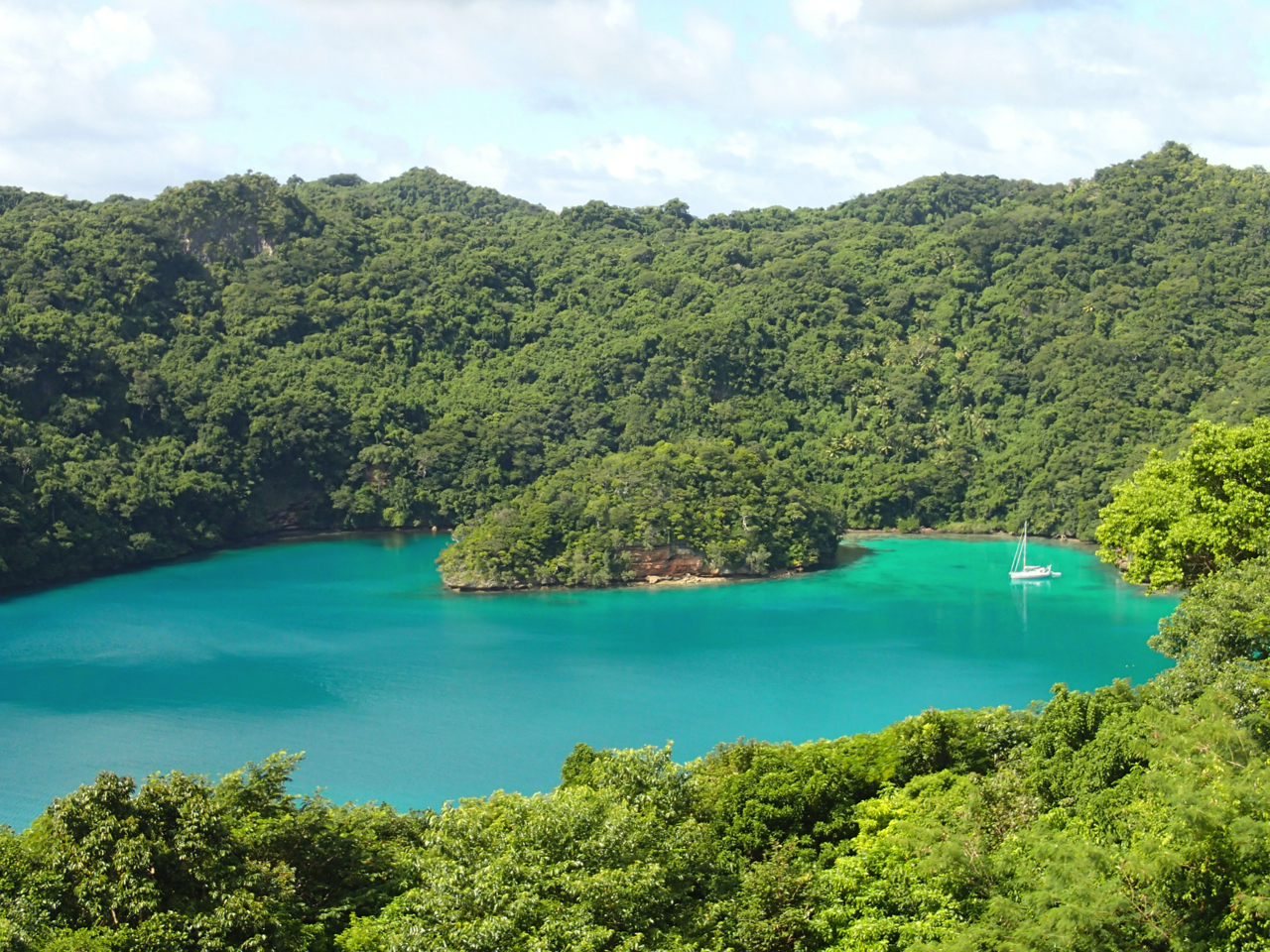 From Viani Bay, we made our way southeast to the island of Vanua Balavu (VAH-noo-ah bah-LAH-voo) in the northern Lau group. The Lau group is the easternmost group of islands in Fiji, reportedly the least visited islands in the South Pacific. This is in large part because (as related to us by one of the Lau’s village chiefs) several decades ago, recreational drugs were brought ashore by some cruisers. This caused quite a stir among the very conservative Fijian villagers, resulting in the chief of the entire Lau group ordering the whole group closed to all tourism thenceforth. For the past several years they have tried to relax this strict isolationist policy, first by issuing only a handful of permits annually to a very few lucky cruisers, then as of last year, opening it up on request to all cruisers holding Fijian cruising permits. Since one still has to clear into Fiji in the middle or western islands, then travel a couple hundred miles against the prevailing trade winds to get here, the Lau group is still a relatively remote destination.