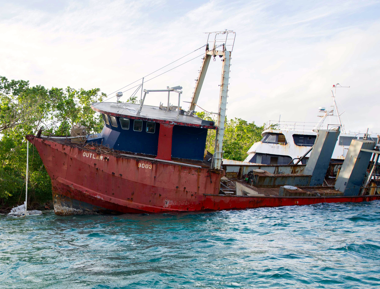 With both pink and blue jobs done, we arrived in Vanuatu on May 11 after a very comfortable trip. So nice to get an easy passage once in awhile! The island of Efate, at first blush, looked in good shape two months after Pam blasted through. We arrived at night, and many of the streetlights in the small capital city of Port Vila were lit (turns out they had only come back in the last few days.) But the morning light revealed some sad sights, one side of the harbor entirely fringed with storm-ruined boats: