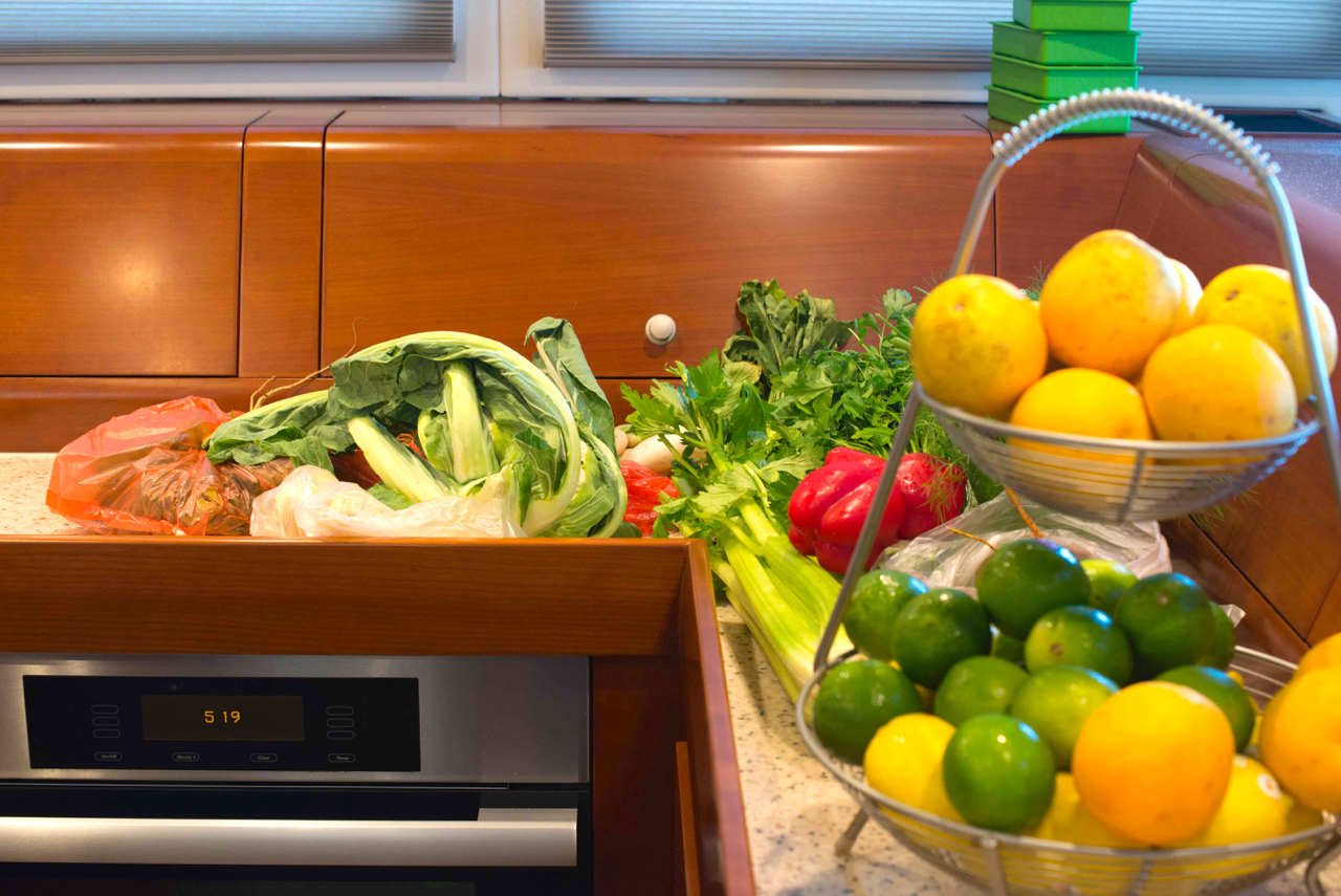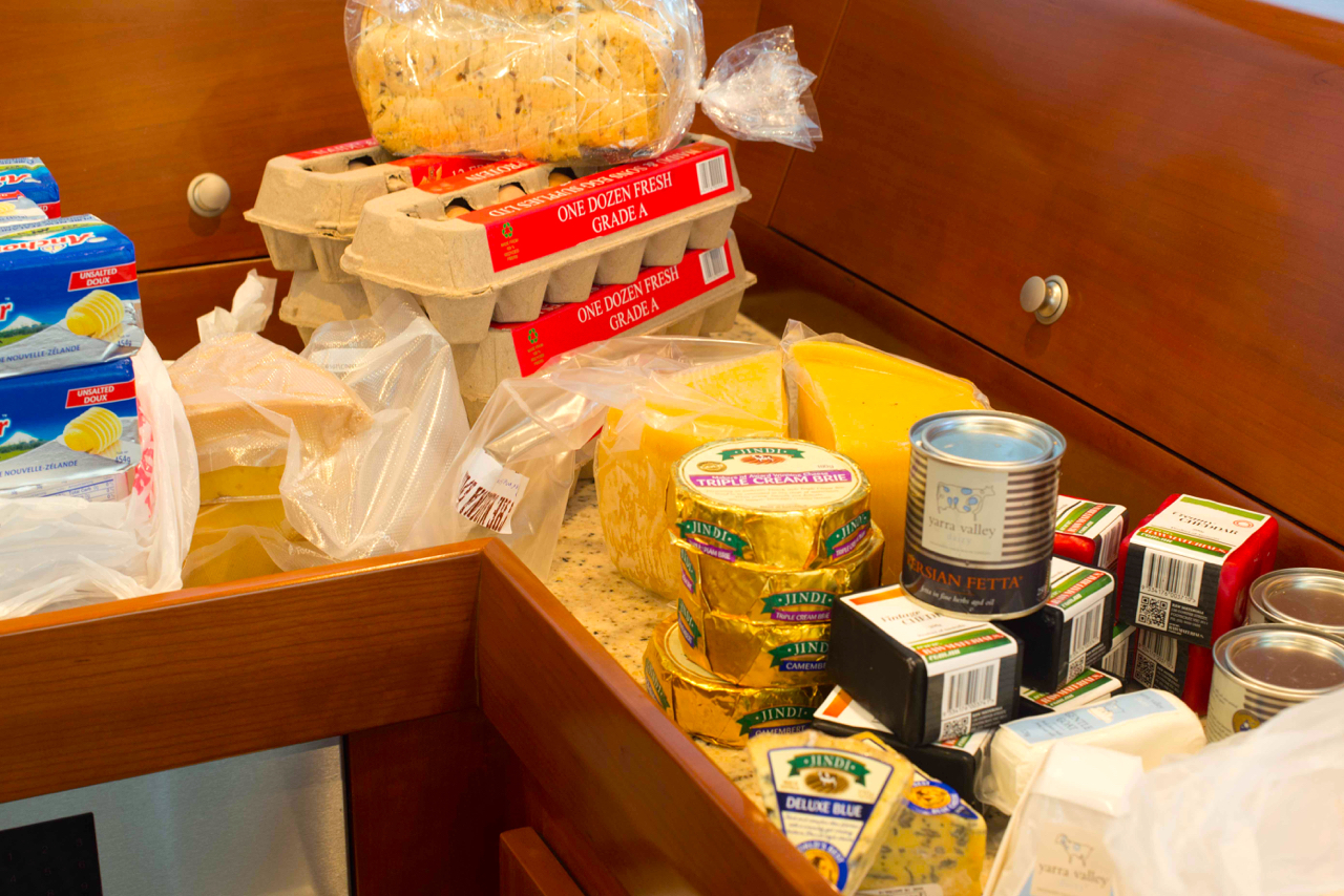 Provisioning for a season in undeveloped remote areas is quite an exercise, especially for folks like us who enjoy cooking a wide variety of food rich in fresh vegetables and herbs, and drinking fine wine most nights we are not underway. We don’t care for processed food, and goods available for purchase on the remote islands of Vanuatu range from nothing to very little. Our solution involves prepping and/or pre-cooking, and freezing. Many of the ingredients we love, like most fresh herbs and much of the produce, are simply not grown in Fiji but we were able to send our personal order through a super yacht provisioning service to get beautiful produce and cheeses from New Zealand. Score!!