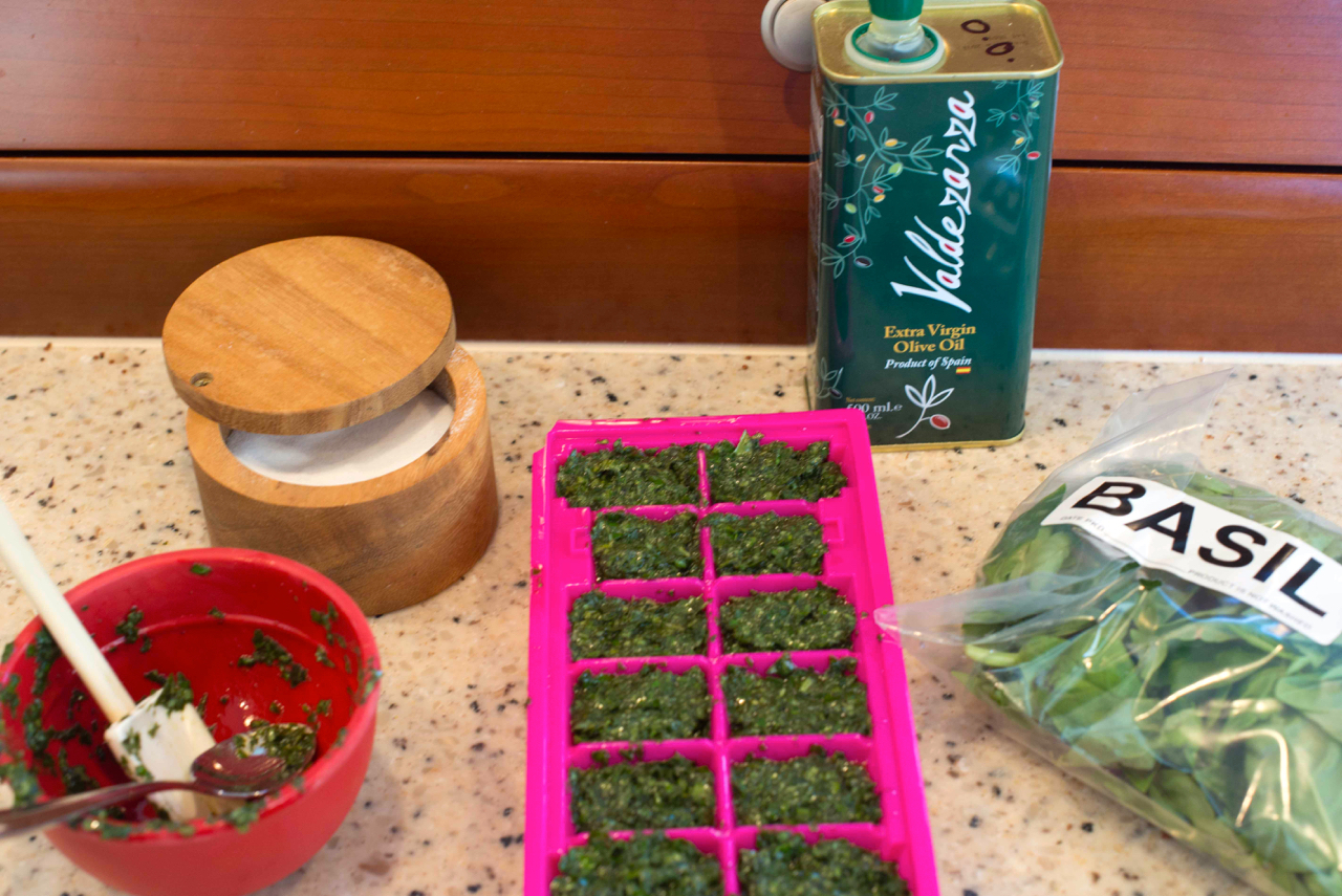 Freezing fresh herbs or citrus is something most of you on land would never think about, but it works well if you do it right: whole mint leaf stacks, frozen in water in ice cube trays; basil chopped with a bit of olive oil and salt , the pesto-ish result frozen into cubes; thyme and rosemary vacuum sealed and frozen in whole sprigs; lemon, lime and orange zest and juice… I had many days of work to do. And that was before I got to things like cauliflower puree, parsnip puree, veggie-rice cakes, baked eggs for easy passage breakfasts etc. With sourcing, procuring, prepping and stowing, it took nearly 14 solid days of work. But the payoff is worth the effort, all those ‘life is good’ moments, evoked by memorable meals taken while underway or swinging at anchor in some magical secluded spot.