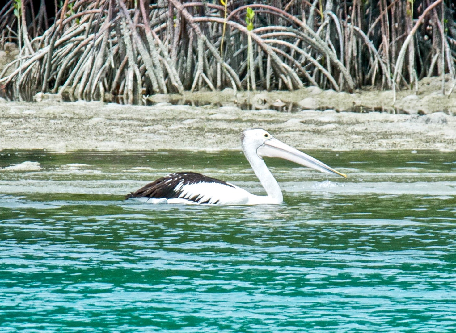 Their pelicans dwarf the American ones, they’re as large as human children, when they stand on the beach. And they feed differently. Instead of flying diving, they paddle up next to schools of small fish, turn their heads sideways and simply shovel the fish into their mouths.