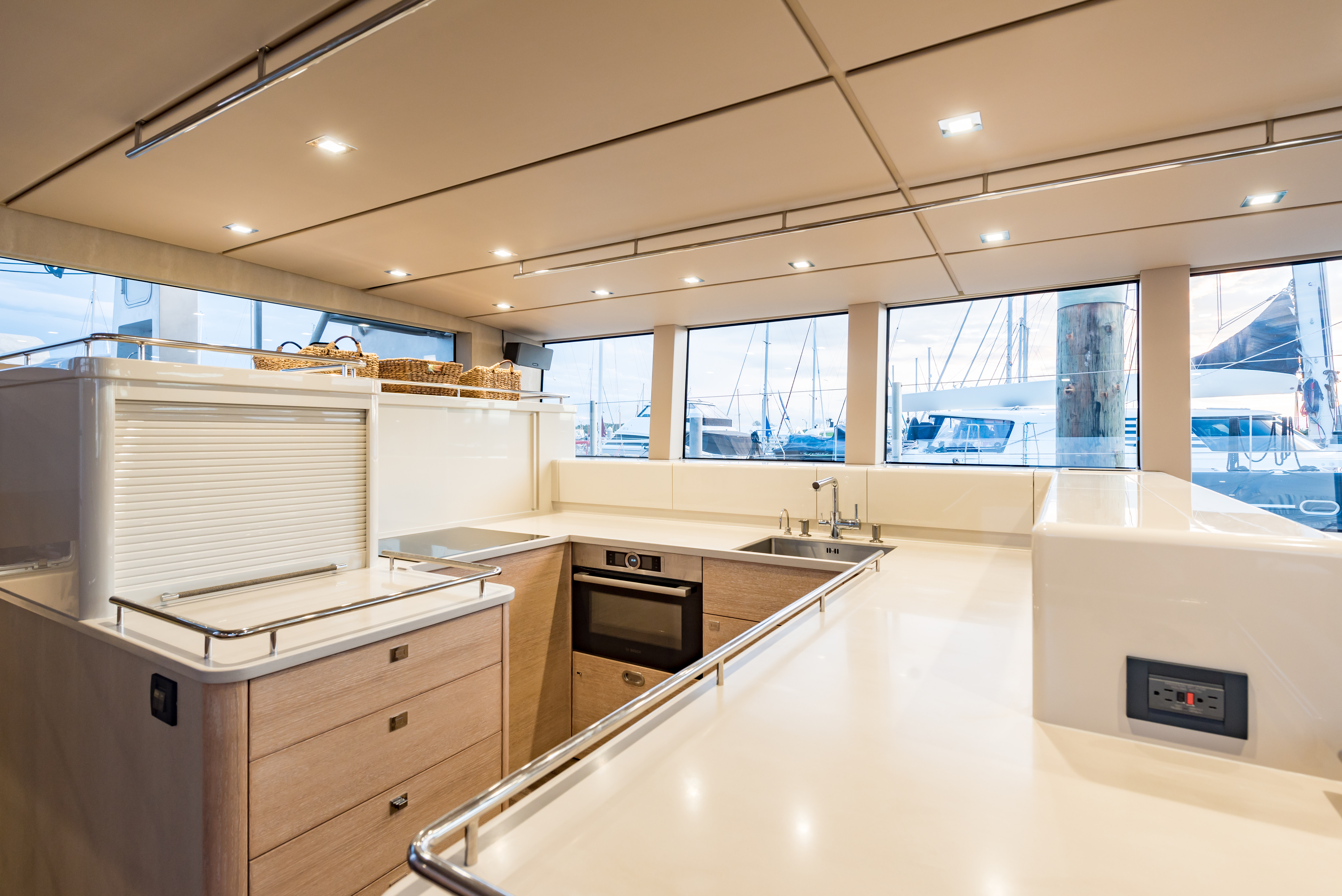 As a random intermission, I’ve been asked by a couple of friends lately about kitchen arrangements aboard our boat, given that I love to cook and we both love to enjoy fine dinners. So here are a couple of pictures of our galley: