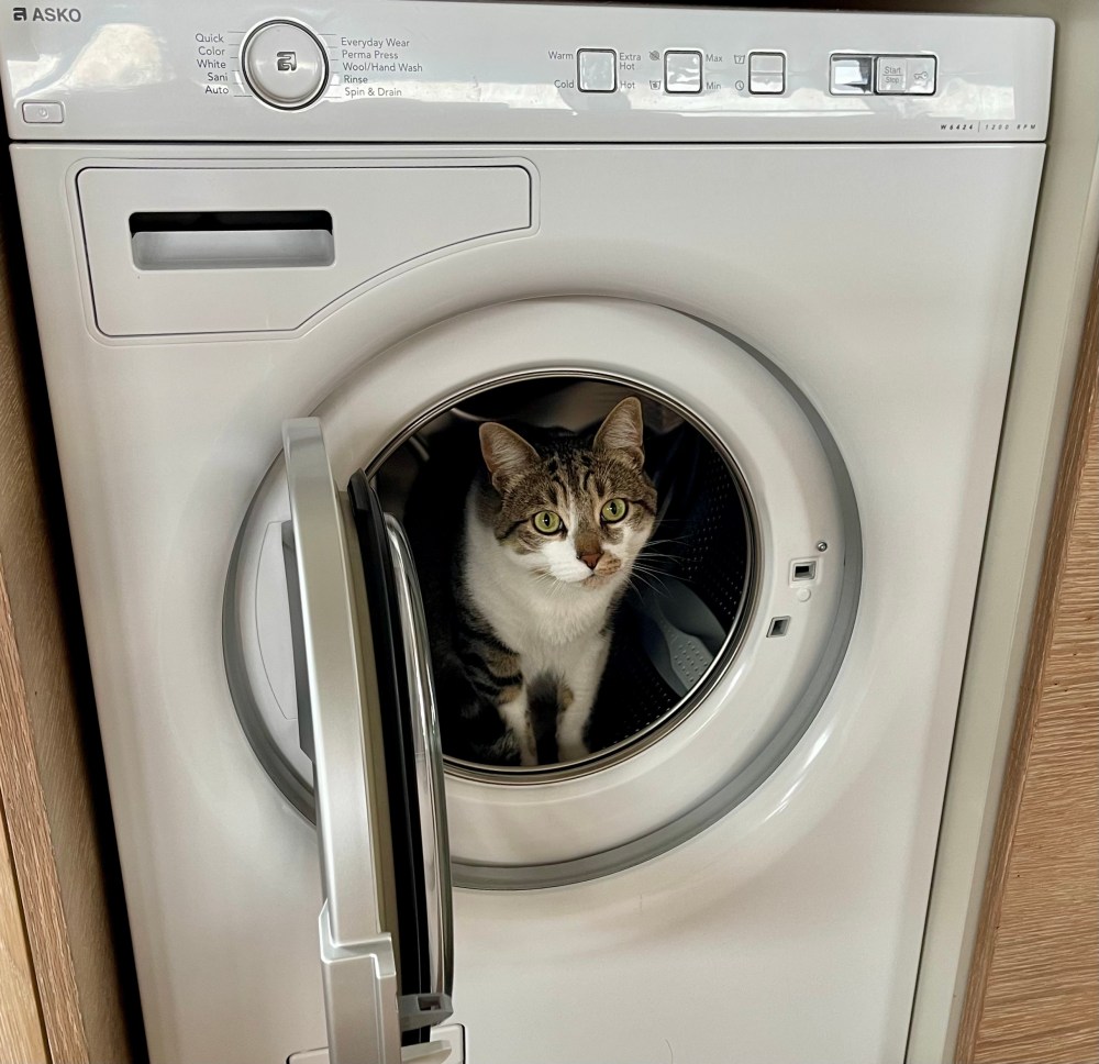 Ash, by the way, was thoroughly uninterested in the whole endeavor, and hid in the washing machine in protest.