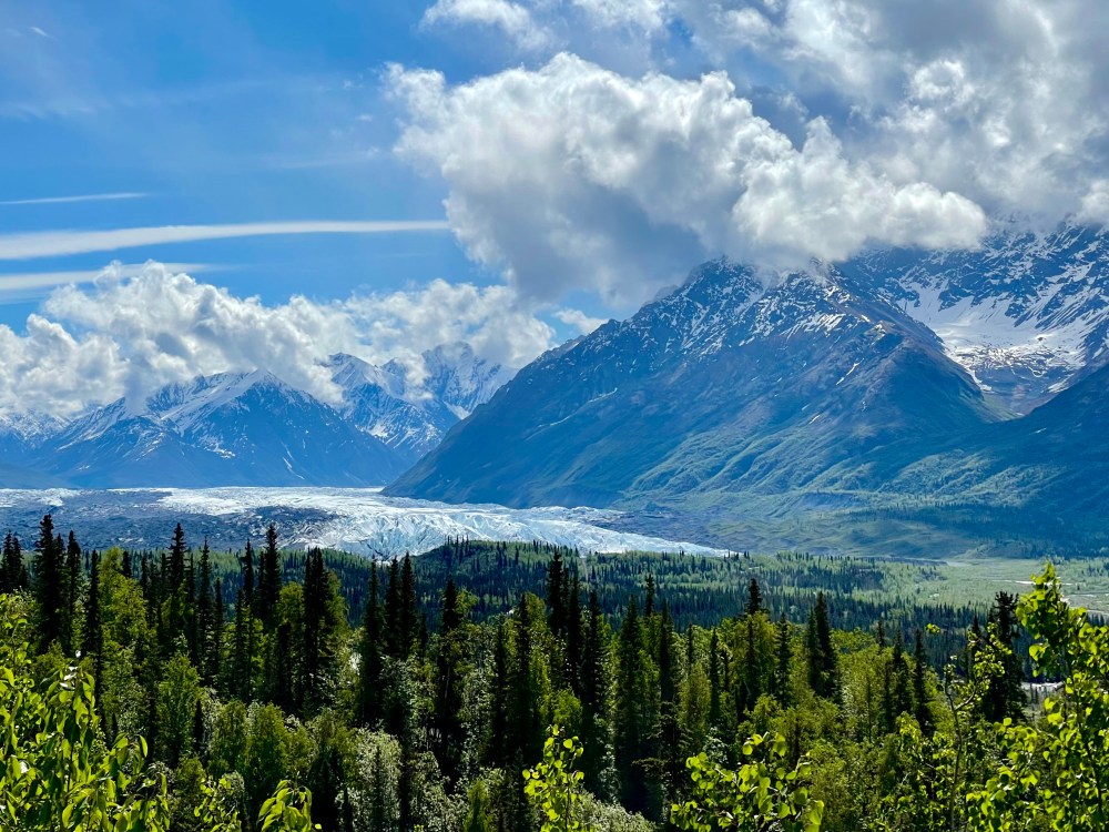 Above, view of a glacier from the highway on the way back from Anchorage.