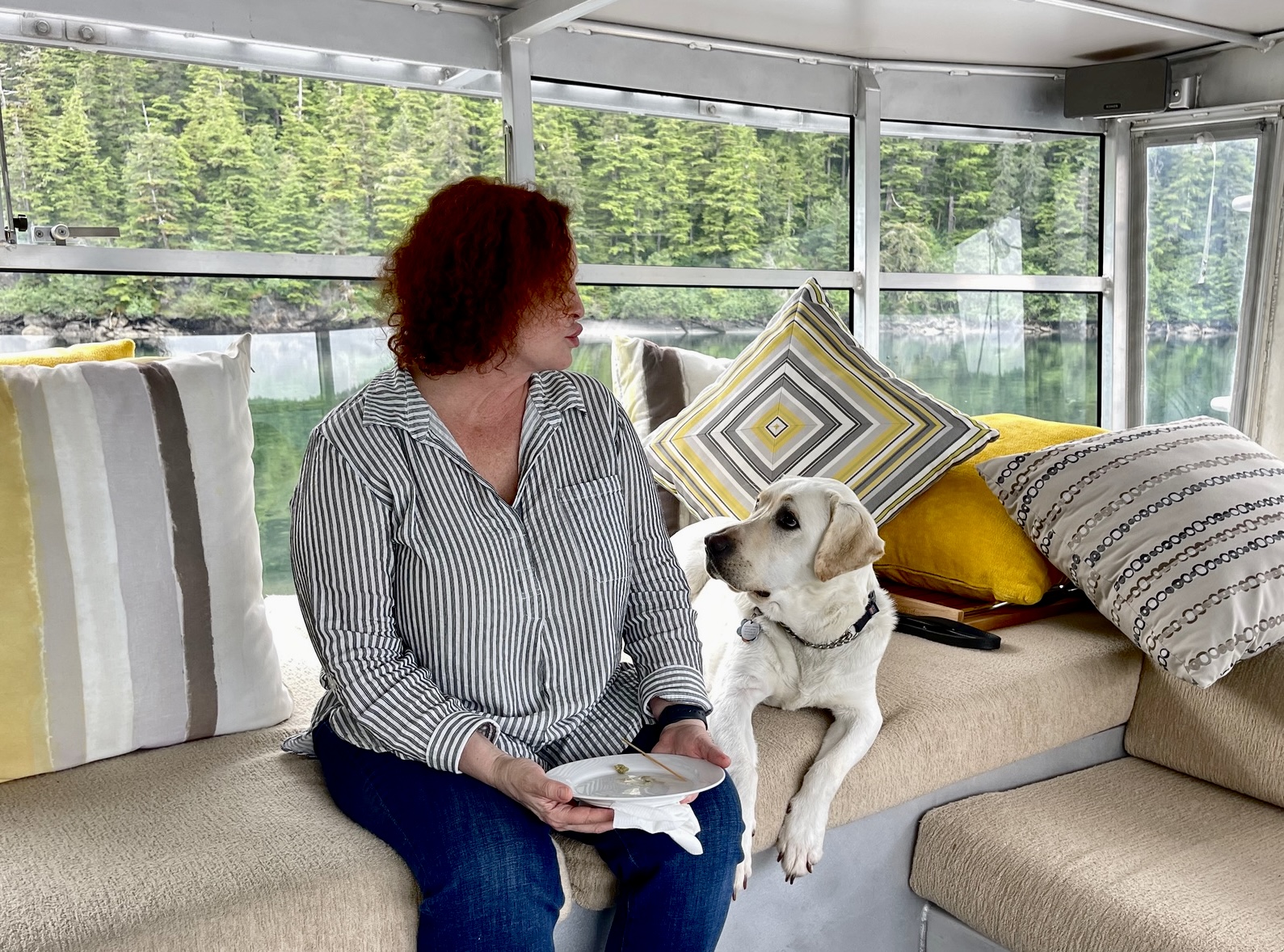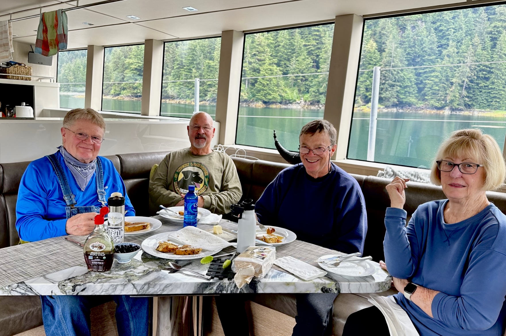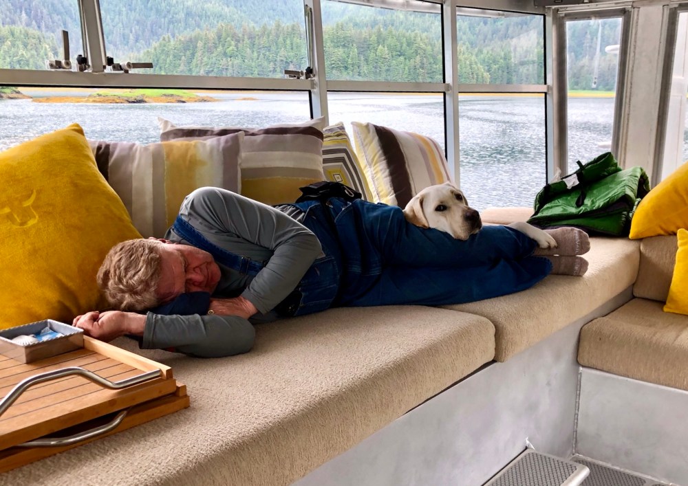 I knew from my prior conversations with Troy that he, Val and I all shared much in common, and I knew Troy had stayed in good touch with the others in the group, but it did cross my mind that we were taking a bit of a gamble spending a week in close quarters with people I hadn’t seen in many decades. But it worked out great. We advised everyone in terms of packing to plan for more of a pajama party and less of a luxury cruise, so the week was dubbed “The Great Alaskan Geezer Pajama Party.” Val said it reminded her of The Big Chill, only on a boat, and without the funeral.