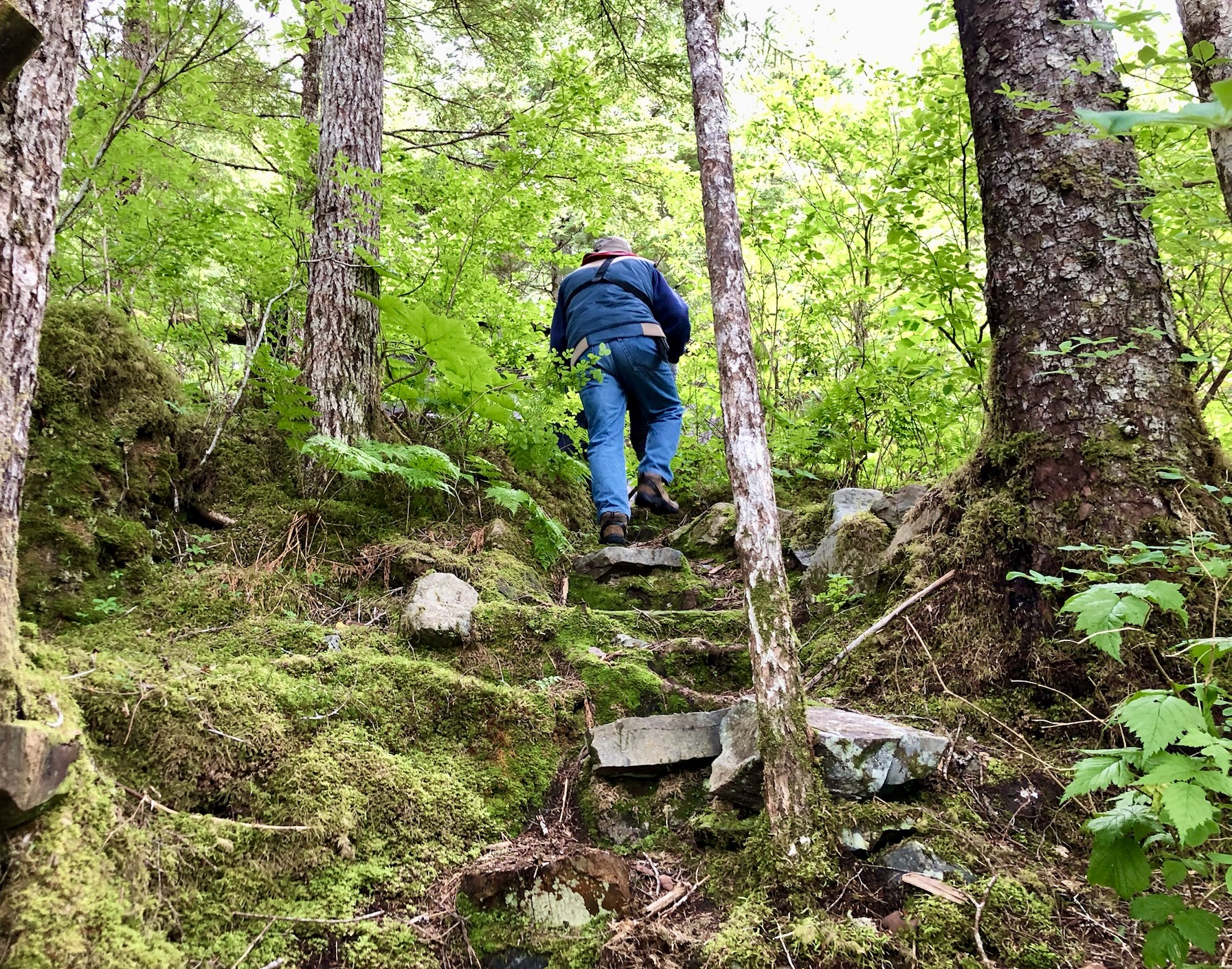 One day I took folks ashore in the dinghy for a hike up the hill to an abandoned cabin in the woods.