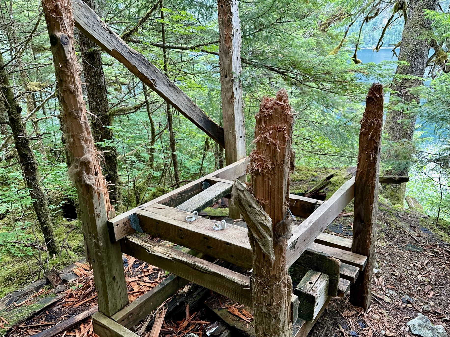 Below, you can see where bears have used this wooden structure as a scratching post.