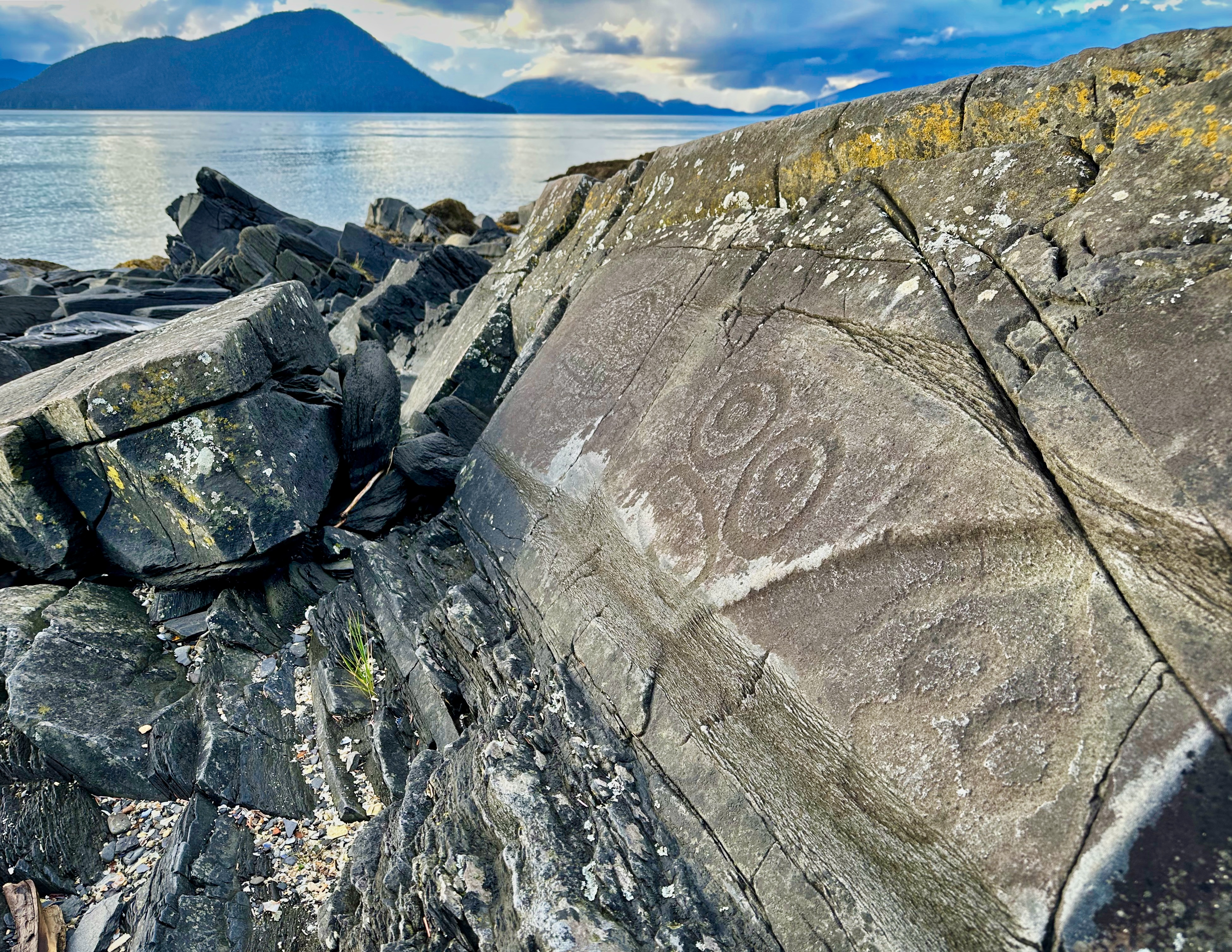In Wrangell, we walked the beach at low tide to look at the petroglyphs.